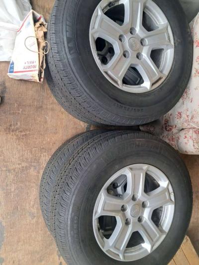 four 17 inch by 7 inch steel truck wheels. new tire sensors. two 17 inch by 7 inch aluminum truck wheels with unused bfg rough trail tires mounted on the two aluminum wheels. pick up or meet up only. Will not ship. cash only.