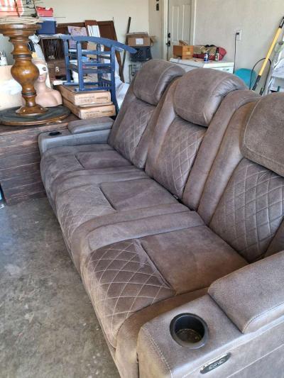 Brown suede couch the mid...