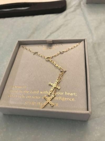 3 sections, center zippered section has 1 small zippered area and the other is a small open section. has never been used.
